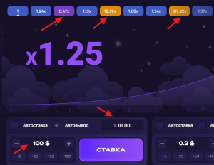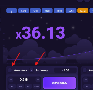 - Настройка автосбора на определённом коэффициенте (например, x2);